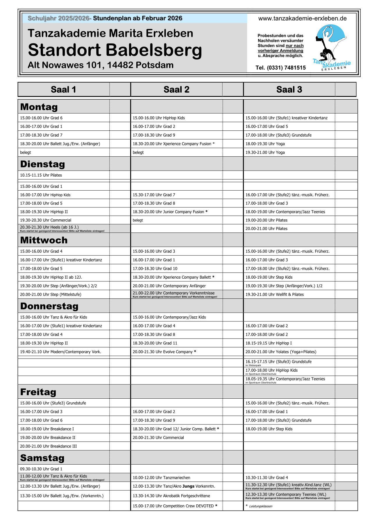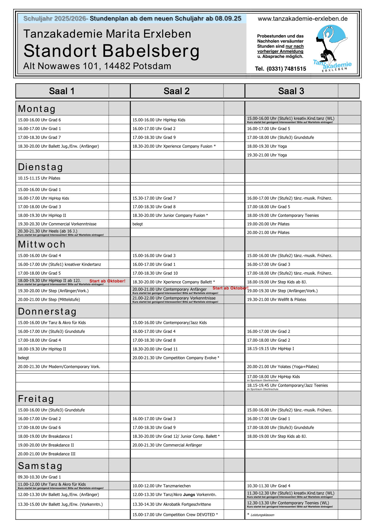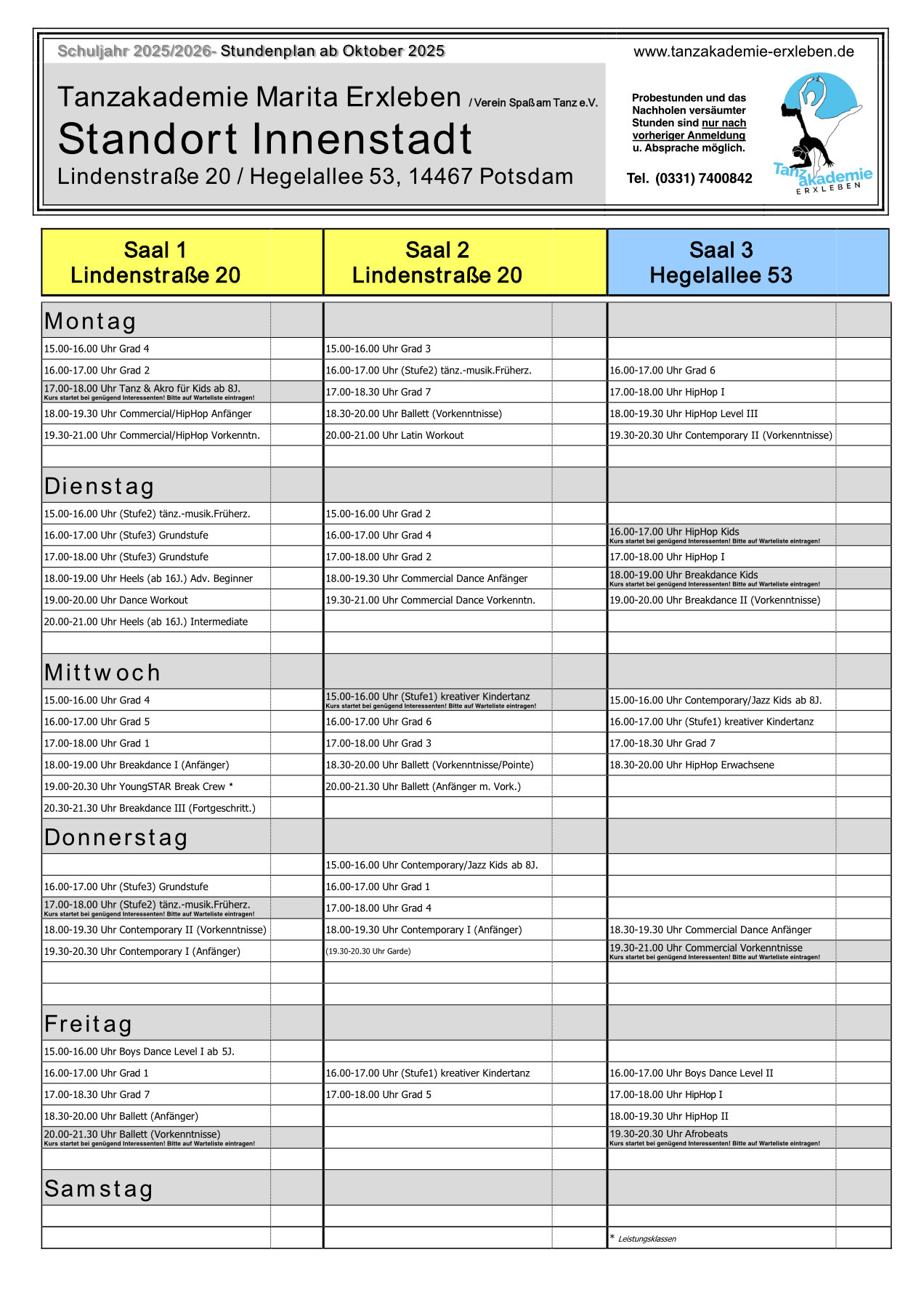 Stundenpläne für das Schuljahr 2025/26